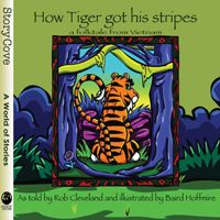 This humorous folktale from Vietnam, retold by Rob Cleveland, tells the story of Tiger, who was once the proudest animal of the jungle. He was even prouder than the peacock. Of course what Tiger was most proud of was his beautiful golden coat. But unfortunately for Tiger, he did not have wisdom and was jealous that only Man seemed to possess it. So Tiger approached Man and demanded that he give Tiger his wisdom. Man then uses his wisdom to outsmart Tiger when he finds himself tied to a tree with a rope. While trying to escape, Tiger burns his coat on the rope, leaving permanent stripes on his beautiful golden coat.